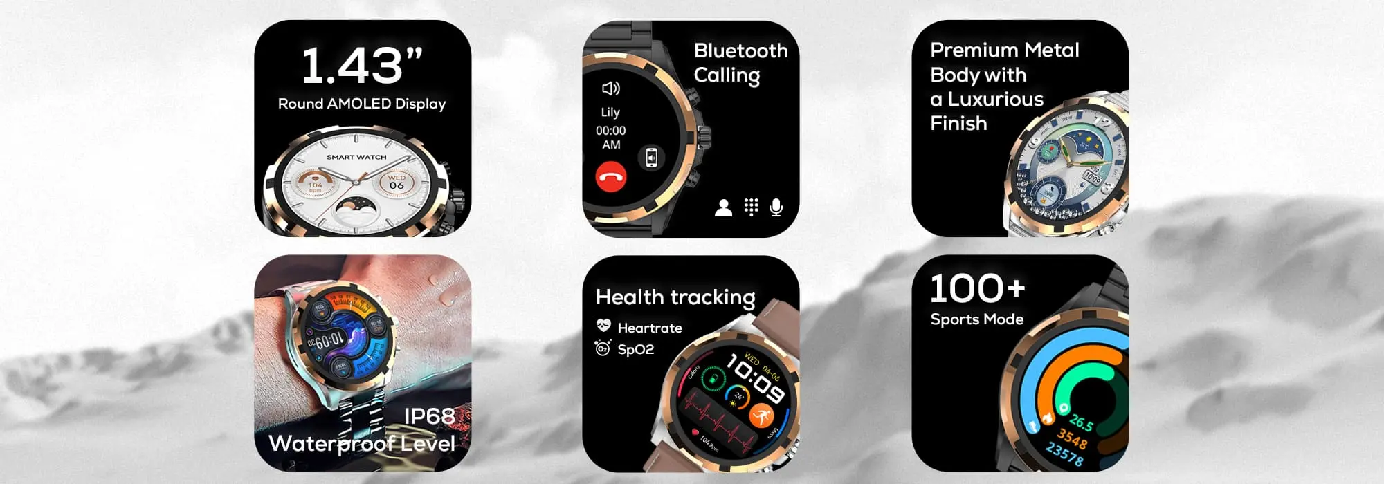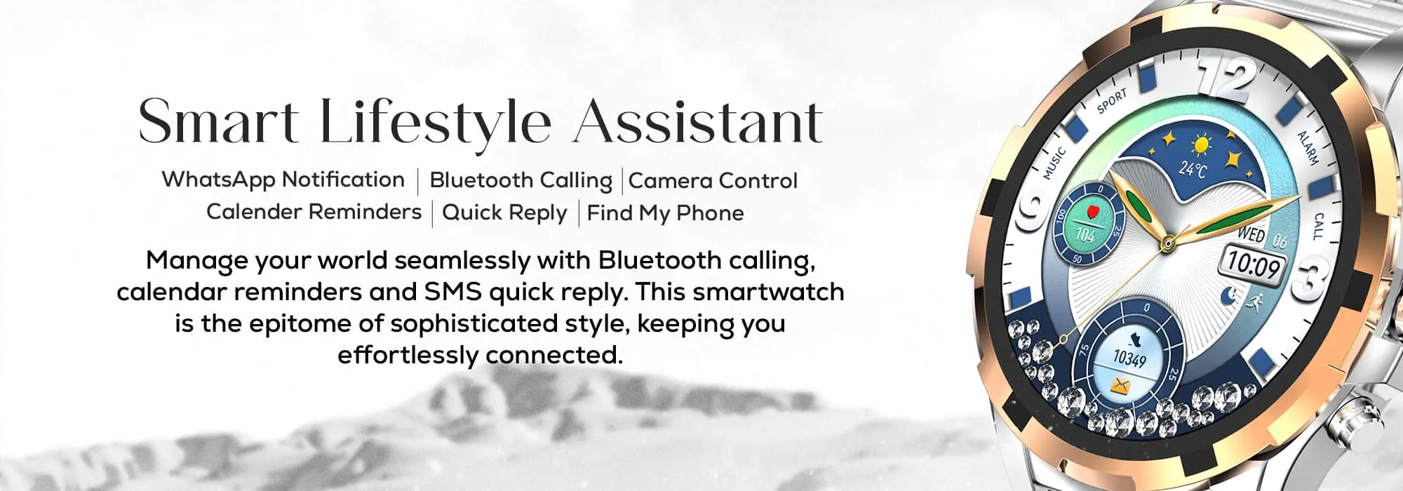 1 Smartwatch, 1 Steel Chain Strap, 1 Free Leather Strap, 1 Manual, 1 Warranty Card, 1 Magnetic Charger, 2 Screen Protector, 1 Chain Adjustment Equipment, 1 Catalogue, 1 Sticker